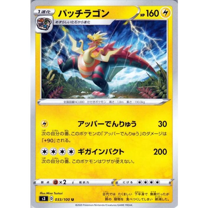 ポケモンカードゲーム剣盾 S3 拡張パック ソード シールドムゲンゾーン パッチラゴン U ポケカ 拡張パック ソード シールド雷 1進化 Pms3 033 U カードミュージアム Yahoo 店 通販 Yahoo ショッピング